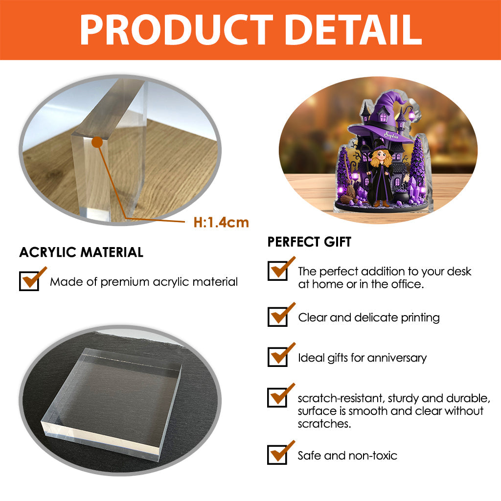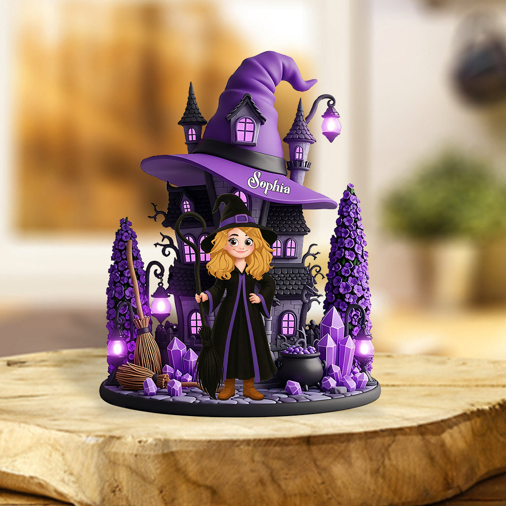 Hexenhaus – Personalisierte Acrylplakette in Hexenform