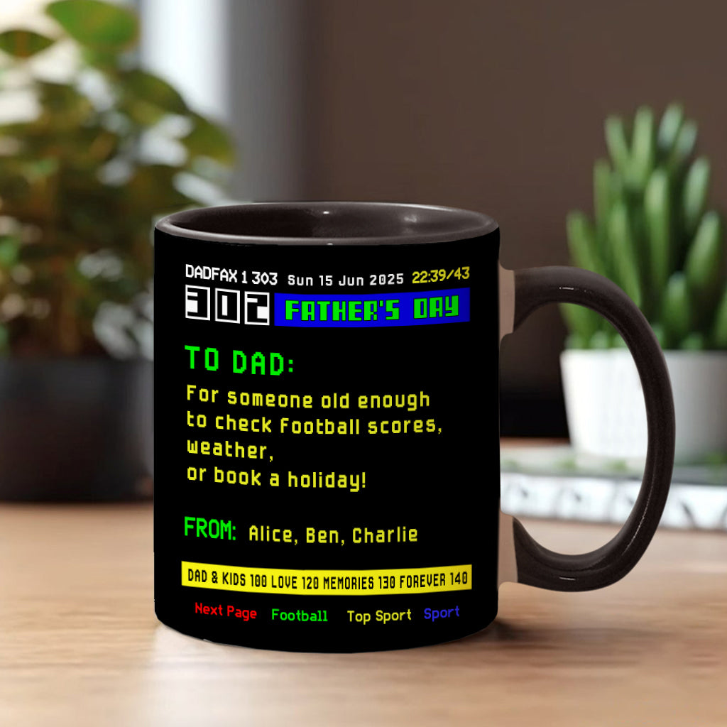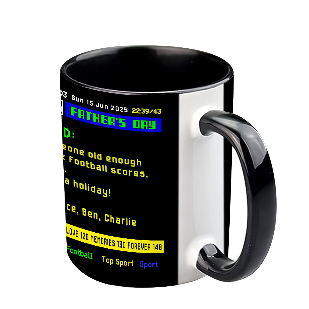 - High quality ceramic mug with two-tone rim, interior, & handle