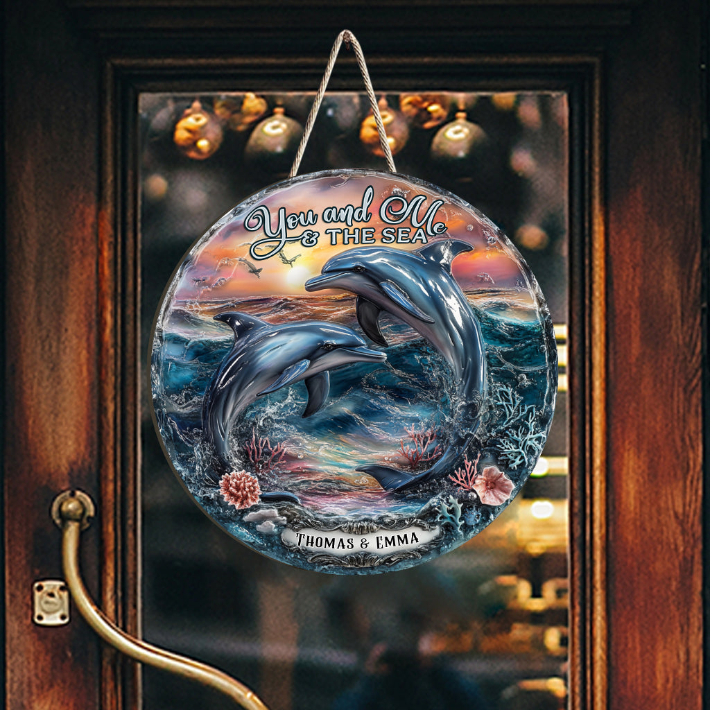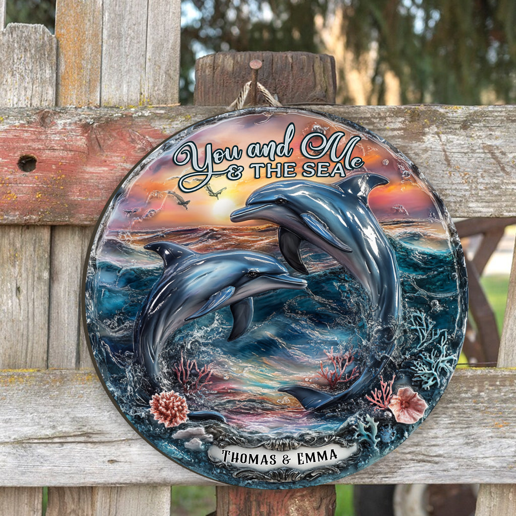 Du und ich und das Meer – Personalisiertes, individuell geformtes Delfin-Holzschild