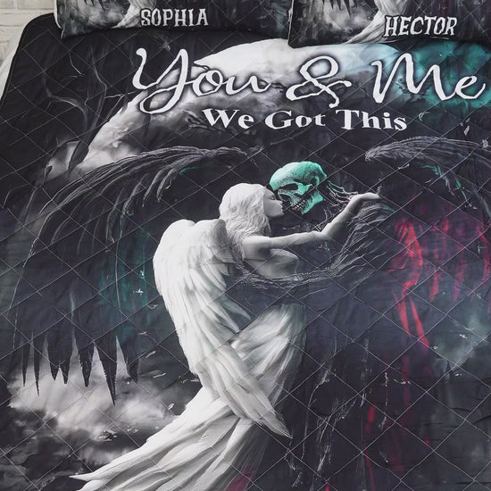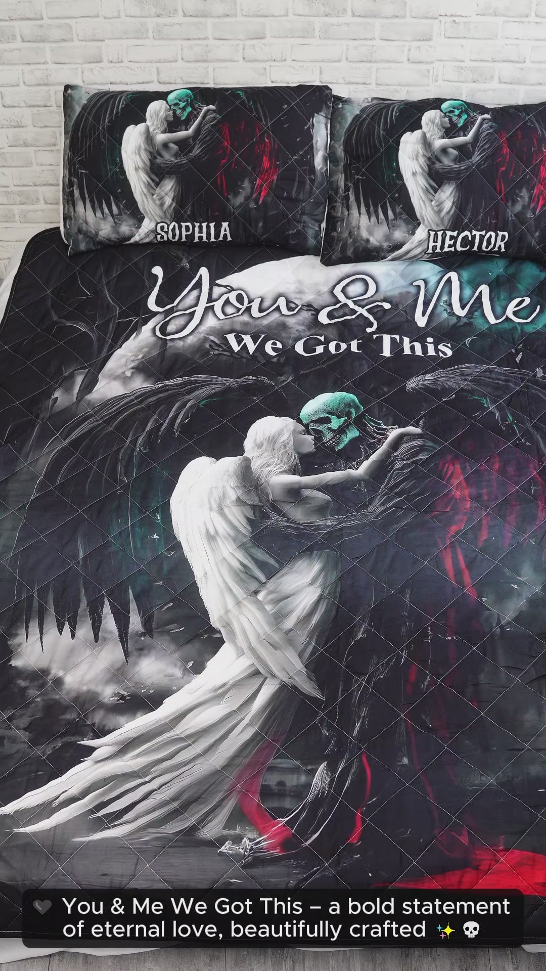 „Du und ich, wir schaffen das“ – Personalisierte Totenkopf-Bettwäschegarnitur