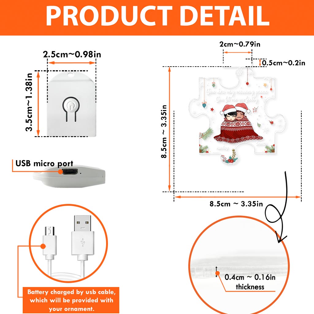 Du bist mein fehlendes Puzzleteil – Personalisierte LED-Weihnachtsbaumkugel in Form eines Paares aus Acryl