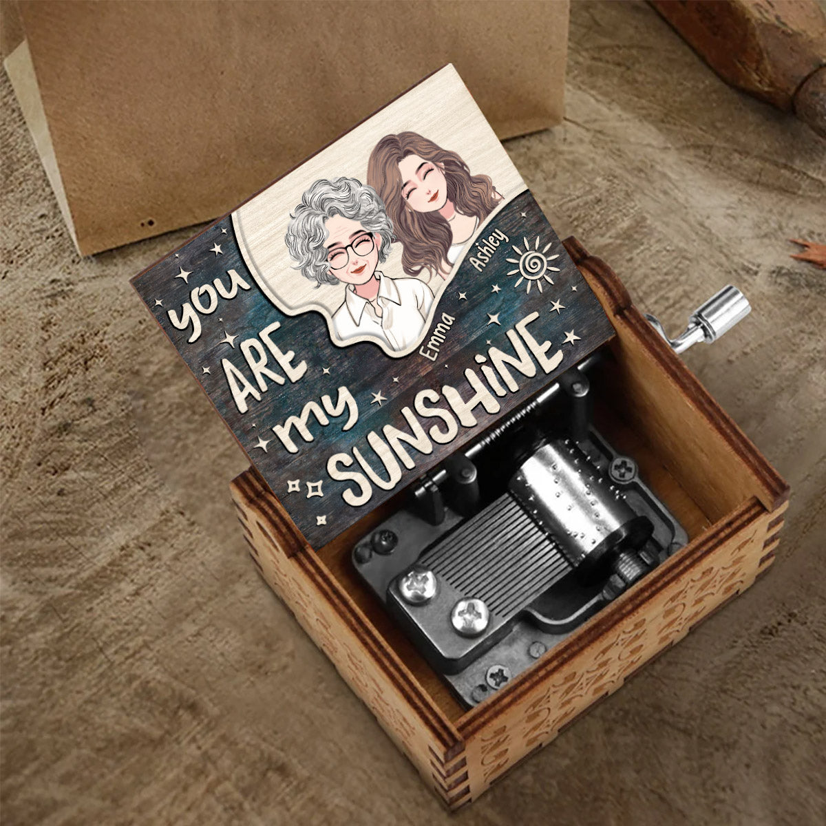 Du bist mein Sonnenschein – Personalisierte Muttertags-Spieluhr mit Handkurbel