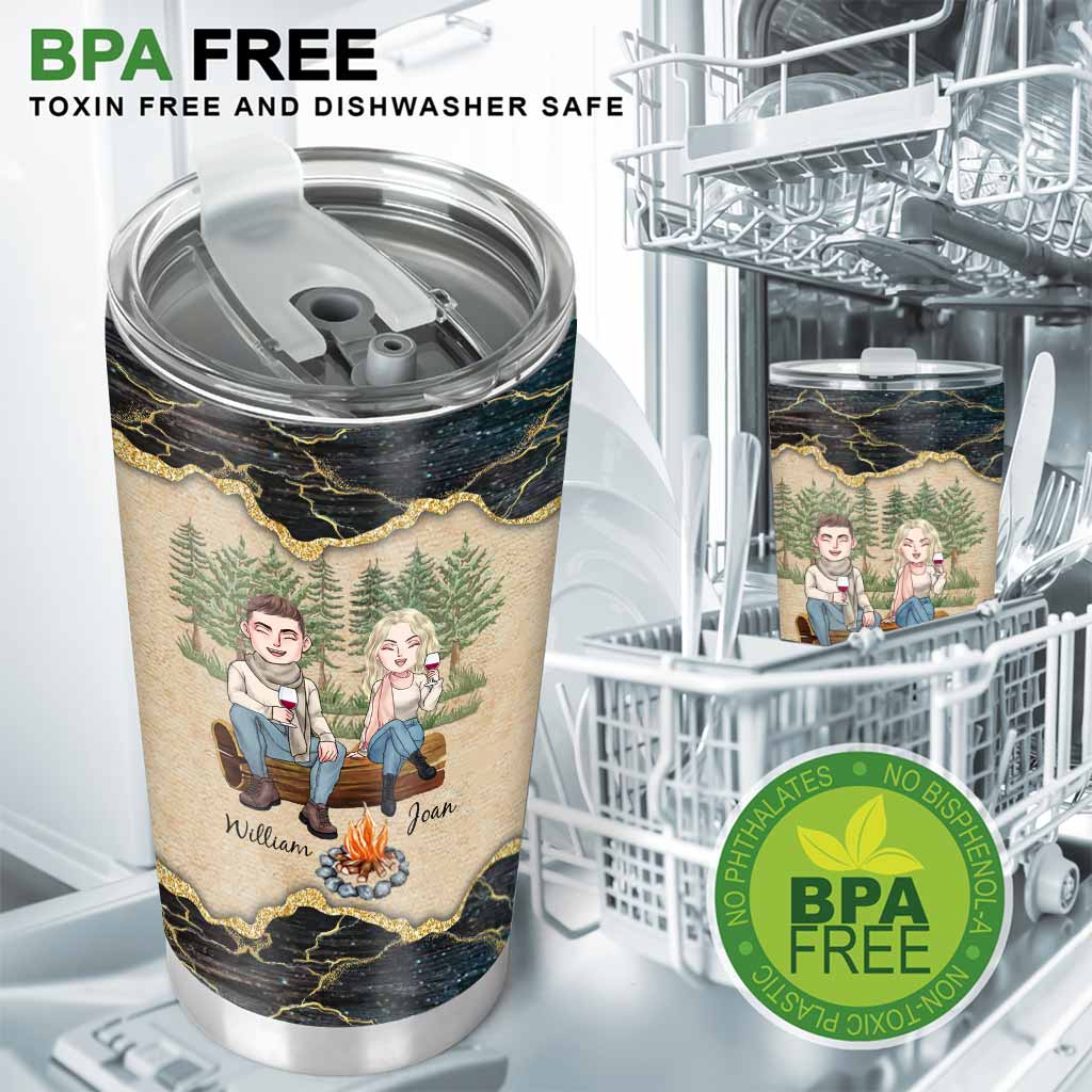 Du, ich und das Lagerfeuer – personalisierter Campingbecher für Paare