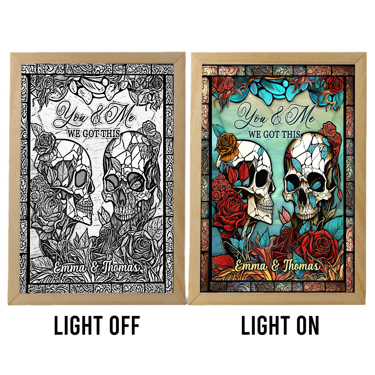 „Du & Ich, wir sind für euch da“ – personalisierter Fotorahmen mit Beleuchtung für Paare