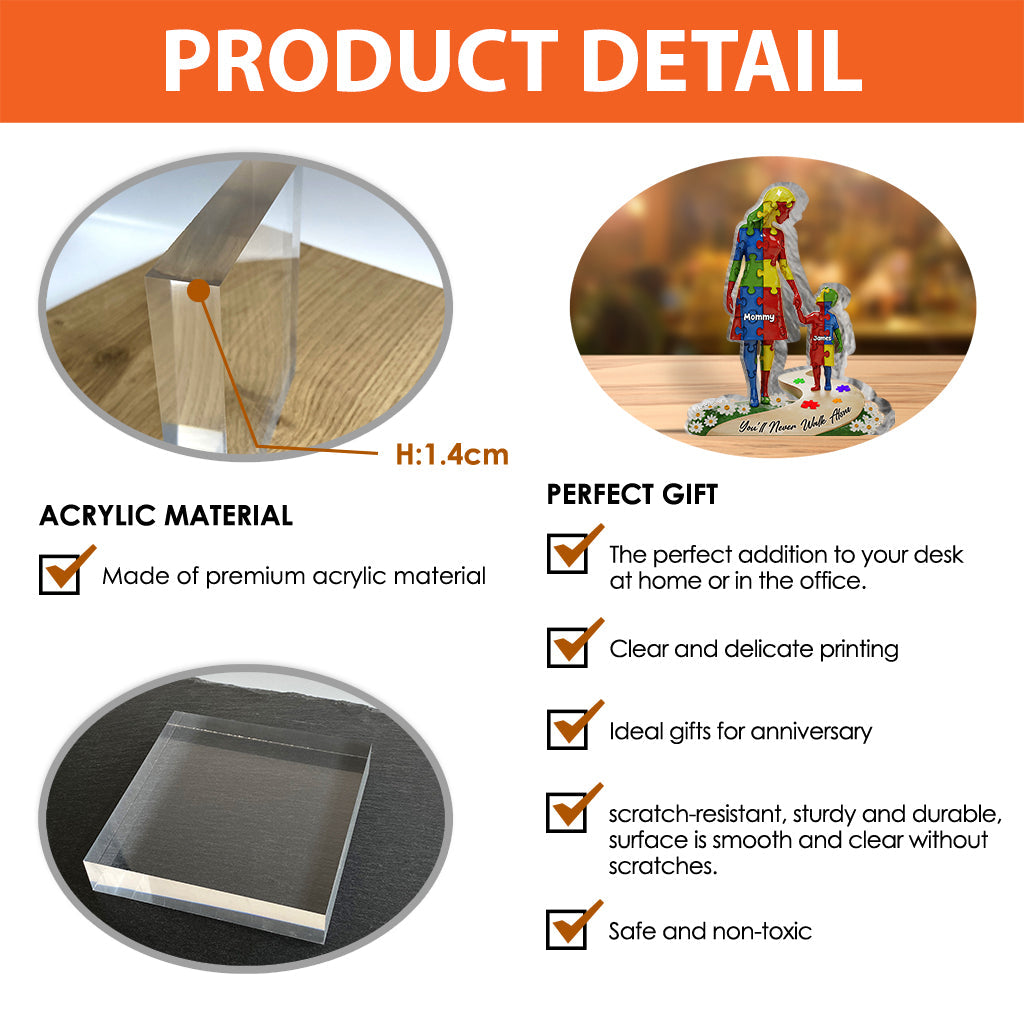 Du wirst niemals allein gehen – Personalisierte Acrylplakette zur Sensibilisierung für Autismus in individueller Form